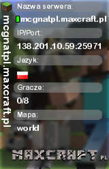 mcgnatpl.maxcraft.pl | world | 138.201.10.59:25971 | 0/8 | Polska | ![]() |