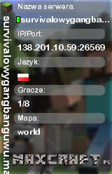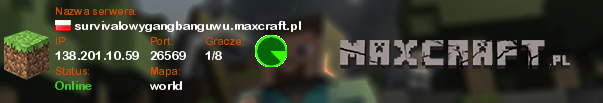 survivalowygangbanguwu.maxcraft.pl | world | 138.201.10.59:26569 | 0/8 | Polska | ![]() |