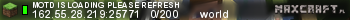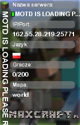 MOTD IS LOADING PLEASE REFRESH | world | 162.55.28.219:25771 | 2/200 | Polska | ![]() |