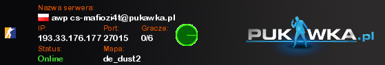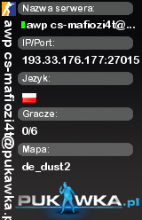 awp cs-mafiozi4t@pukawka.pl | de_dust2 | 193.33.176.177:27015 | 0/6 | Standard | ![]() |