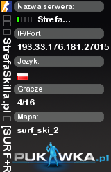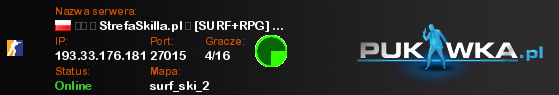 StrefaSkilla.pl [SURF+RPG] SKINY|NOZE|REKAW | surf_skysiege | 193.33.176.181:27015 | 4/16 | Standard | ![]() |