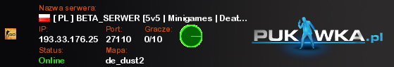 [ PL ] BETA_SERWER [5v5 | Minigames | Deathrun | Bhop | Jailbre | de_dust2 | 193.33.176.25:27110 | 0/10 | Standard | ![]() |