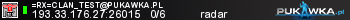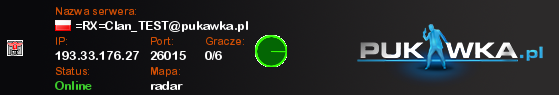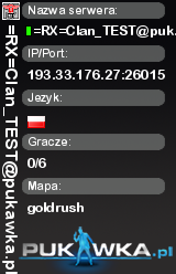 =RX=Clan_TEST@pukawka.pl | oasis | 193.33.176.27:26015 | 0/6 | Standard | ![]() |
