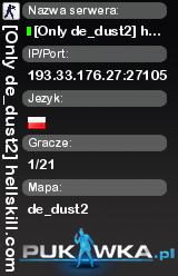 [Only de_dust2] hellskill.com @pukawka.pl | de_dust2 | 193.33.176.27:27105 | 1/21 | Standard | ![]() |