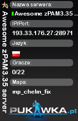 Awesome zPAM3.35 server | mp_chelm_fix | 193.33.176.27:28971 | 0/22 | Standard | ![]() |