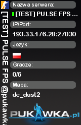NAZWA SERWERA [SRCDS] @pukawka.pl | de_mirage | 193.33.176.28:27030 | 0/6 | Standard | ![]() |