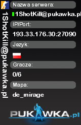 1ShotKill@pukawka.pl | de_mirage | 193.33.176.30:27090 | 0/6 | Standard | ![]() |