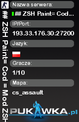 ## ZSH Paint= Cod = Mod ZSH ## | cs_assault | 193.33.176.30:27200 | 1/10 | Standard | ![]() |