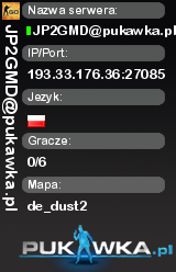 JP2GMD@pukawka.pl | de_dust2 | 193.33.176.36:27085 | 0/6 | Standard | ![]() |