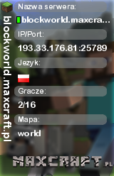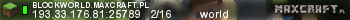 blockworld.maxcraft.pl | world | 193.33.176.81:25789 | 2/16 | Polska | ![]() |