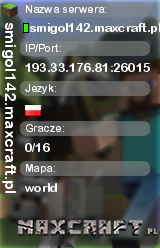 smigol142.maxcraft.pl | world | 193.33.176.81:26015 | 0/16 | Polska | ![]() |