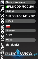 [PL] [COD MOD 201 LVL]@pukawka.pl | de_dust2 | 193.33.177.141:27015 | 2/12 | Premium | ![]() |