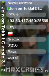 Join on Tekkit Classic 3.1.2 | world | 193.33.177.150:25565 | 0/256 | Polska | ![]() |