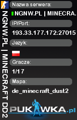NGNW.PL | MINECRAFT DD2 | SKINY | GLOVES | RANK | RANGI | VIP | de_minecraft_dust2 | 193.33.177.172:27015 | 1/17 | Standard | ![]() |