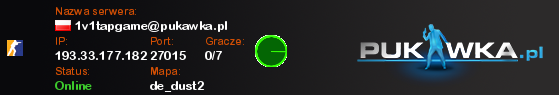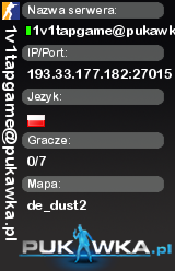 1v1tapgame@pukawka.pl | de_dust2 | 193.33.177.182:27015 | 0/7 | Premium | ![]() |
