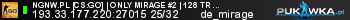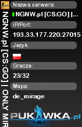 NGNW.pl [CS:GO] | ONLY MIRAGE #2 | 128 TR | !ws | !knife | !wanted | !gloves | !shop | NOCNY VIP | de_mirage | 193.33.177.220:27015 | 32/32 | Premium | ![]() |