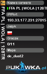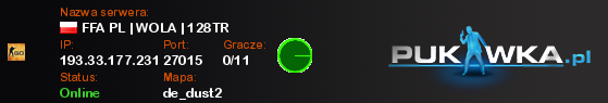 FFA PL | WOLA | 128TR | de_dust2 | 193.33.177.231:27015 | 0/11 | Premium | ![]() |