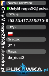 OnlyMirageZK@pukawka.pl | de_dust2 | 193.33.177.235:27015 | 0/17 | Premium | ![]() |
