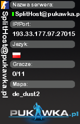 SplitHost@pukawka.pl | de_dust2 | 193.33.177.97:27015 | 0/11 | Premium | ![]() |