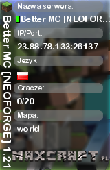 Better MC [NEOFORGE] 1.21.1 | world | 23.88.78.133:26137 | 0/20 | Polska | ![]() |