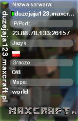 duzejaja123.maxcraft.pl | world | 23.88.78.133:26157 | 0/8 | Polska | ![]() |