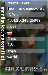 manilavice.maxcraft.pl | world | 46.4.29.245:25698 | 0/8 | Polska | ![]() |