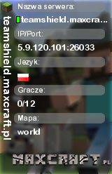 teamshield.maxcraft.pl | world | 5.9.120.101:26033 | 0/12 | Polska | ![]() |