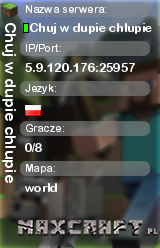 Chuj w dupie chlupie | world | 5.9.120.176:25957 | 0/8 | Polska | ![]() |