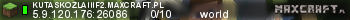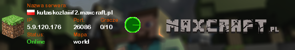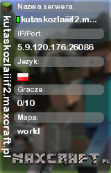kutaskozlaiiif2.maxcraft.pl | world | 5.9.120.176:26086 | 0/10 | Polska | ![]() |
