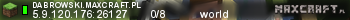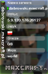 dabrowski.maxcraft.pl | world | 5.9.120.176:26127 | 0/8 | Polska | ![]() |