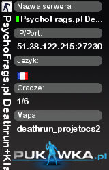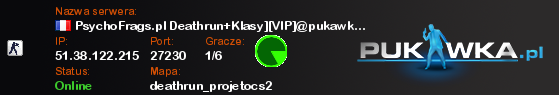 PsychoFrags.pl Deathrun+Klasy][VIP]@pukawka.pl | deathrun_projetocs2 | 51.38.122.215:27230 | 1/6 | Standard EU | ![]() |