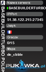 BASEBUILDERTURBO POLSKA NEWW12@pukawka.pl | de_train | 51.38.122.215:27345 | 0/15 | Standard EU | ![]() |