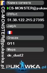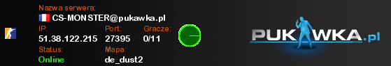 CS-MONSTER@pukawka.pl | de_dust2 | 51.38.122.215:27395 | 0/11 | Standard EU | ![]() |