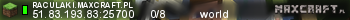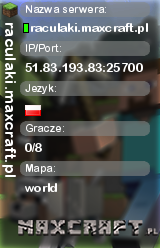 raculaki.maxcraft.pl | world | 51.83.193.83:25700 | 0/8 | Polska | ![]() |