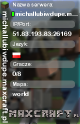 michallubiwdupe.maxcraft.pl | world | 51.83.193.83:26169 | 0/8 | Polska | ![]() |
