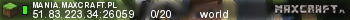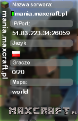 mania.maxcraft.pl | world | 51.83.223.34:26059 | 0/20 | Polska | ![]() |