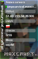 smpsurvival.maxcraft.pl | world | 51.83.223.34:26306 | 0/16 | Polska | ![]() |